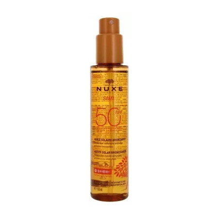 Nuxe Sun Huile Solaire Bronzante Visage et Corps SPF50 150 ml est une protection cellulaire anti-âge formulée pour prévenir l'apparition des taches. Cette haute protection solaire convient à toutes les peaux.