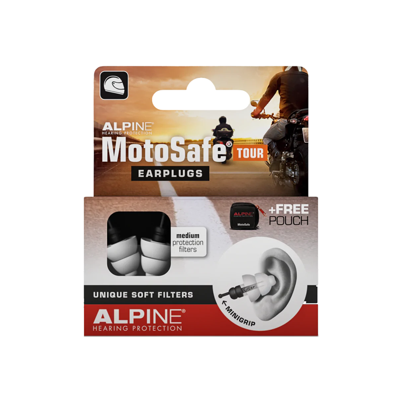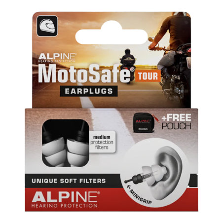 Le trafic environnant, votre système de navigation, l'interphone et la moto sont toujours parfaitement clairs grâce aux innovants AlpineAcousticFilters™. Cette variante touring spéciale des bouchons d'oreille MotoSafe offre une valeur de réduction du bruit élevée de 17 dB (SNR) et protège votre audition pendant la conduite.