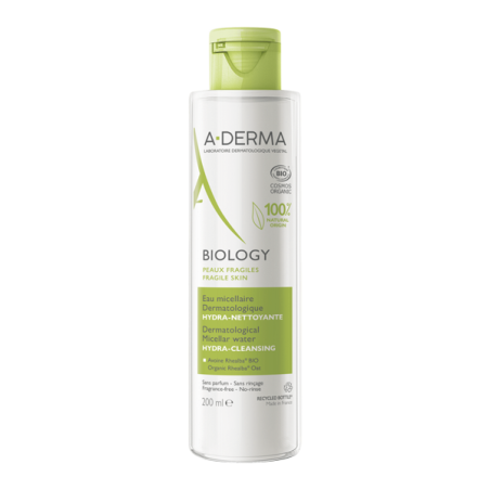 Pour démaquiller et nettoyer efficacement et avec une extrême douceur les peaux fragiles du visage, A-DERMA a formulé BIOLOGY Eau micellaire dermatologique hydra-nettoyante.