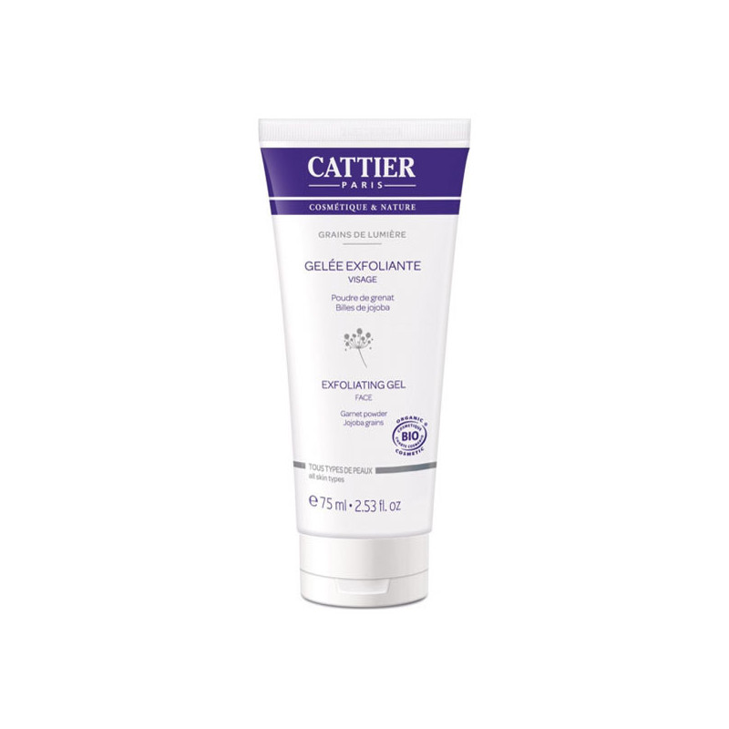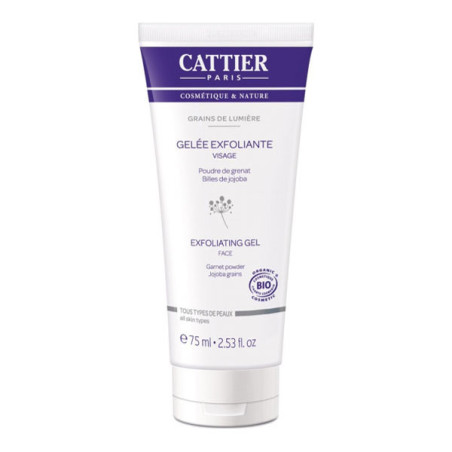 La Gelée exfoliante grains de lumière Cattier certifiée bio, véritable cure oxygénante, élimine délicatement les cellules mortes et les impuretés. Sa triple action exfoliante (graines de rosier muscat bio, poudre de grenat almandin et billes de jojoba) affine le grain de peau et révèle l’éclat du teint. Enrichie en aloe vera régénérant et adoucissant, cette gelée à la texture fraîche et fondante offre un soin optimal pour un teint lumineux et une peau lisse et douce. Elle est idéale pour les peaux sensibles.