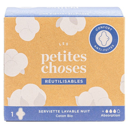 Les Petites Choses Serviette Lavable Nuit Coton Bio est une serviette lavable de jour fabriquée à partir de coton Bio.