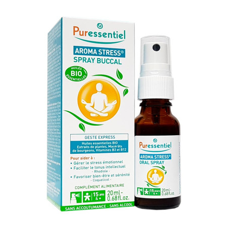 Le spray buccal stress Puressentiel a une formule naturelle pour vous aider à "gérer le stress émotionnel, faciliter le tonus intellectuel et favoriser bien-être et sérénité", comme l'indique l'expert des huiles essentielles sur la boîte du spray Aroma Stress. Sans sucre, il a un bon goût naturel d'agrumes.
